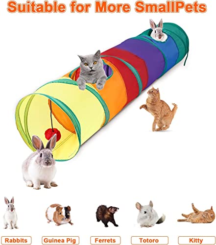 Tunnel arcobaleno pieghevole, giocattolo interattivo per gatti, tubo pieghevole con palla da gioco per gatti indoor, adatto per conigli, gattini, cuccioli, furetti, porcellini d'India