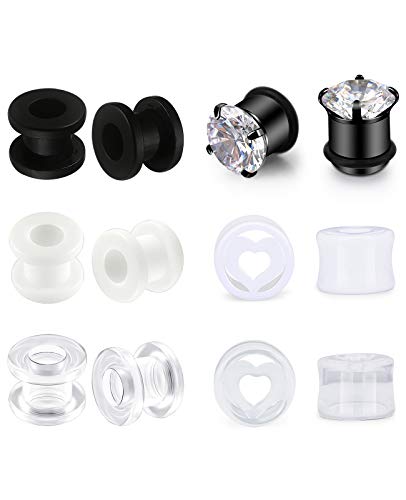 VFUN Ear Tunnels Plugs Cubic Zirconia Acrylic Double Flared Flexible Dilatatore Orecchio Lobe Stretching Cuore Five-Pointed Star Shaped Donna Uomo 12MM