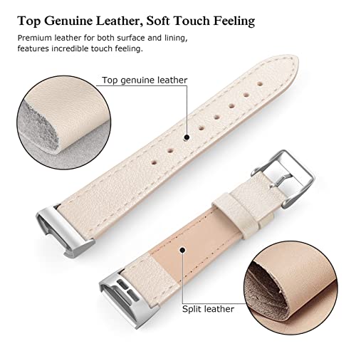 Tuocal Cinturino in vera pelle compatibile con Fitbit Charge 3 / Fitbit Charge 4 Cinturino in pelle regolabile per Fitbit Charge 3 / Fitbit Charge 4 Activity Tracker Donna Uomo Donna Beige