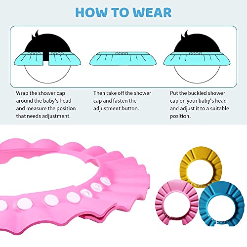 TuoFang Doccia Cap per Bambino, 3 Pezzi Cuffia da Bagno per la Testa del Bambino Regolabile, Cappello Doccia Bambini, Protezione per Bambini Cuffia per Paraorecchie per la Cura del Bambino
