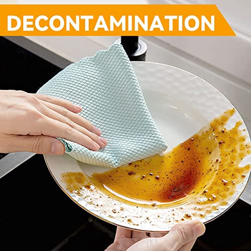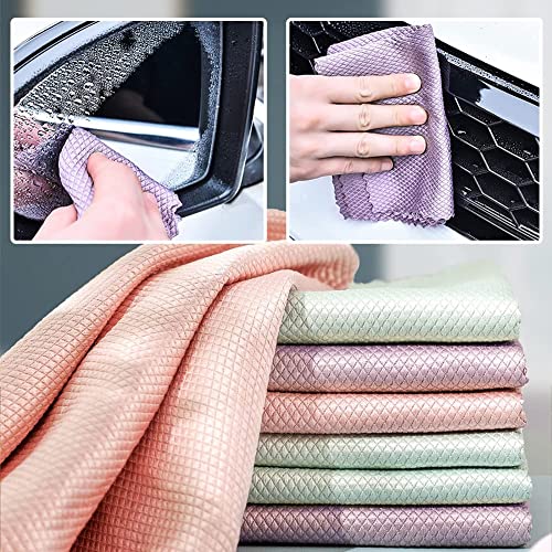 【Forte potere pulente】 Panni in Microfibra per la pulizia è dotata di un'esclusiva squama di pesce che può rimuovere polvere e sporco rapidamente, buon assorbimento d'acqua e facilmente senza lasciare graffi sull'oggetto.