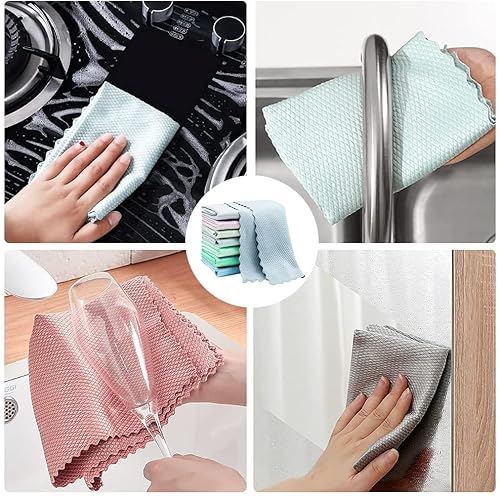 【Materiale privo di lanugine】 Il panno è un panno in microfibra a squame di pesce realizzato in tessuto di fibra. Resistente, riutilizzabile e lavabile in lavatrice. e non è facile per i batteri crescere.