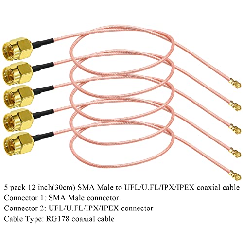 TUOLNK Cavo coassiale da U.FL a SMA SMA Connettore maschio a spina UFL IPX IPEX Cavo coassiale Antenna WiFi Cavo di prolunga pigtail per Mini PCI Express RG178 12 pollici (30 cm) 5 pcs