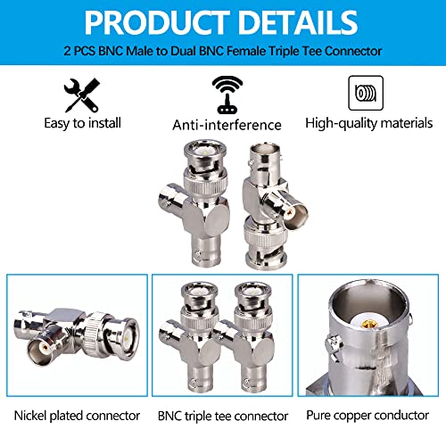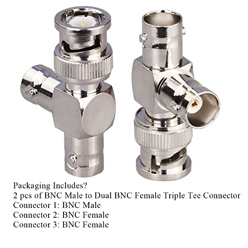 TUOLNK BNC maschio a doppio connettore BNC femmina a forma di T triplo connettore a T Adattatore splitter coassiale a 3 vie per sistemi di sicurezza/dispositivi wireless Confezione da 2
