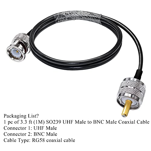 TUOLNK Cavo ponticello da BNC a UHF RG58 Spina maschio BNC a PL259 Cavo di prolunga maschio SO239 3,3 piedi (1 m) a bassa perdita per radio CB Cavo coassiale a spirale da PL 259 a BNC