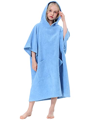 Tuopuda Telo Mare Bambini Asciugamano da Bagno con Cappuccio Microfibra Asciugamano da Spiaggia Piscina Accappatoio Ragazzi Ragazze Mantello Poncho Bambine Biancheria da Bagno Copricostume, blu,