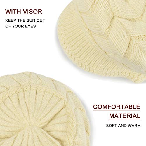 Tuopuda Cappello Donna Invernale Cappello Beanie Cappelli Donna Berretti, cappello con orecchie per Donne, cappello donna inverno con visiera (Beige)