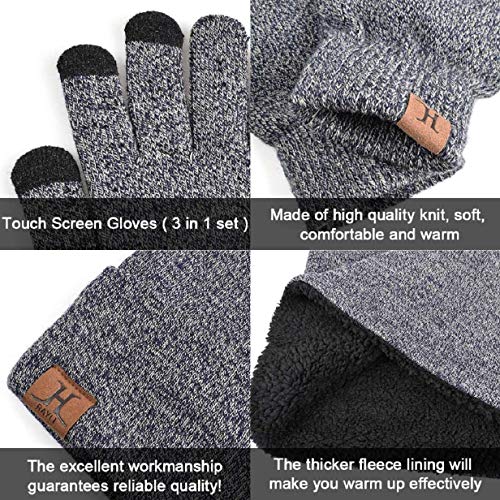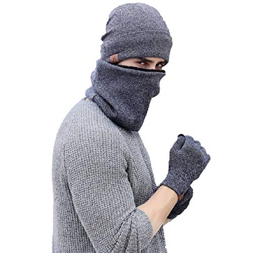 Tuopuda Cappello Uomo Invernali Berretto Donna e Sciarpa Set in Maglia a Fodera di Lana Unisex Beanie Hat Set includono Cappello Scaldacollo Guanti Touch Screen (Grigio Chiaro)