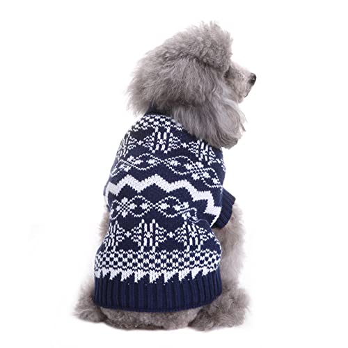 Tuopuda Felpa Cane Natalizi Maglione a Maglia Cappotto Inverno Caldo Maglieria Vestiti per Cani e Gatto di Taglia Medio Piccola, Marina Militare-Fiocco di neve, S