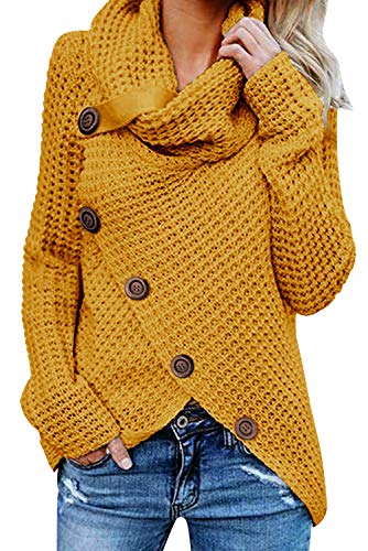 Tuopuda Maglione Donna Felpa Ragazza Asimmetrica Sweatshirt Collo Alto Pullover Elegante Casual Tops Maniche Lunghe Maglione Autunnale Invernale Primavera con Bottoni Natale, Giallo, S