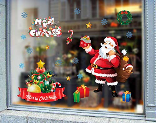 Tuopuda Natale Adesivi Decorazione Babbo Natale Adesivo Natale Vetrofanie Display Finestra Sticker Wallpaper Murali Fai da te Finestra Rimovibile Adesivi (Multicolore)