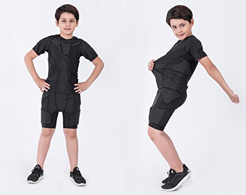TUOYR, maglietta a compressione imbottita per bambini, a costine, per calcio, equitazione, paintball, rugby, Hockyball (pantaloncini imbottiti, YXL (vita: 68-80 pollici)