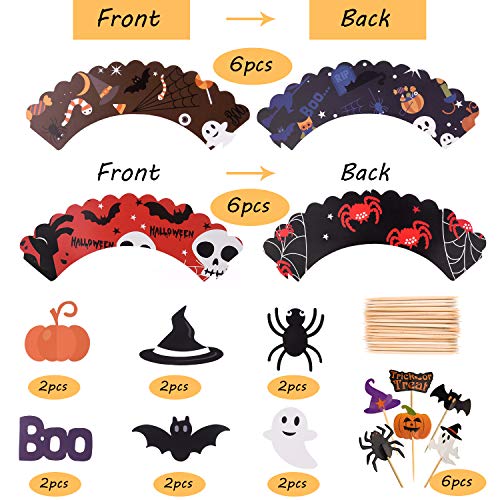 TUPARKA 30Pcs Wrapper per Cupcake di Halloween Decorazioni per Toppers per Torta di Halloween Ragno Zucca Fantasma Decorazioni per Torte a Mano