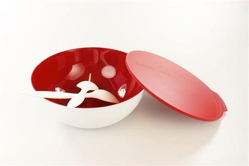 TUPPERWARE G06 Ciotola Allegra da 5,0 L bianco rosso + Posate Insalata
