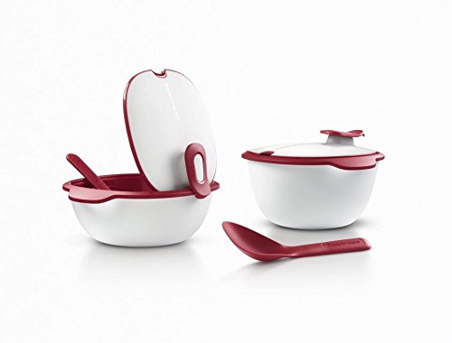 Tupperware Thermo-Duo Warmie Tups Ciotola 3,25 L + 2,25 L + scolapasta + mestolo Rosso