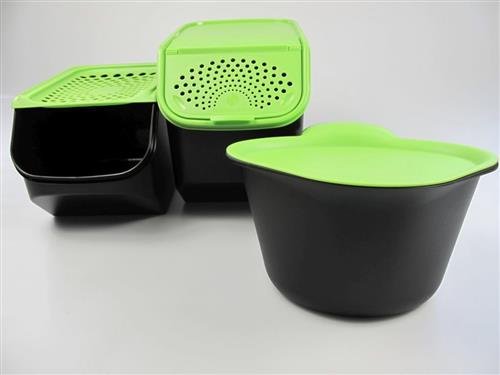 TUPPERWARE Wally Raccoglitutto+Orto in Casa da 5,5 L+Ortofresco 8,3 L nero verde