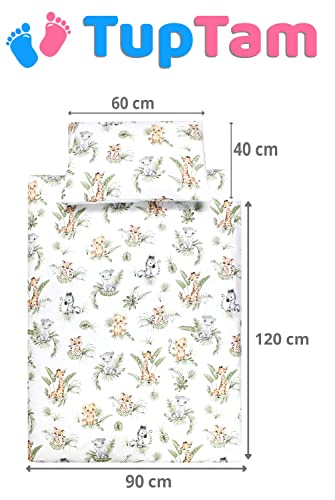 TupTam Biancheria da letto per bambini Ragazzi Ragazze Set 2 pezzi 100 x 135 cm + 40 x 60 cm, Safari/Leone/Marrone/Foglie/Verde, 120x90 cm