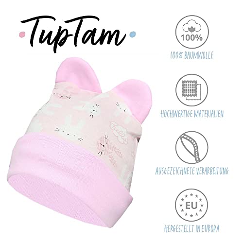 TupTam Cappellino con Orecchie per Neonato, 2 Pezzi, Rosa Coniglio/Bianco, 62-68