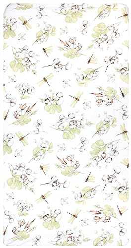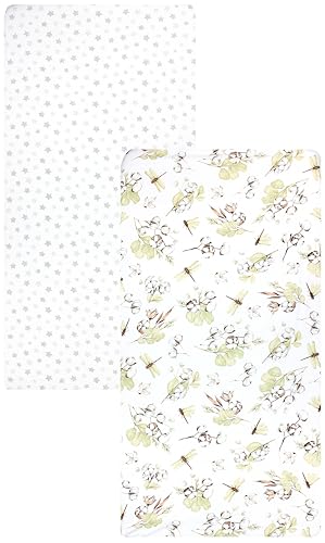 TupTam Lenzuolo per Bambini Bambino Confezione da 2, Fiori di cotone bianco verde/Stelle a pois grigio bianco, 60 x 120 cm