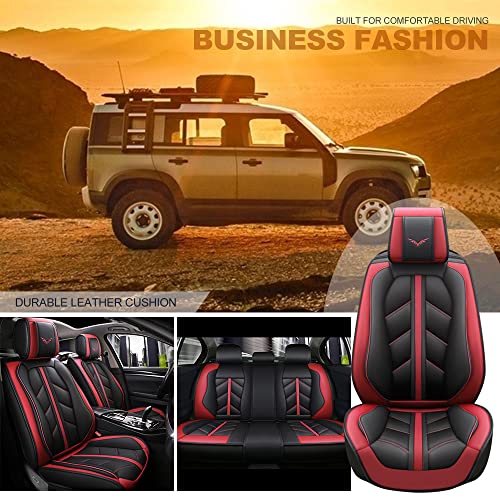 Tuqiang Coprisedili per auto per Compass 5 posti, in pelle confortevole per tutte le stagioni, set completo, nero-rosso