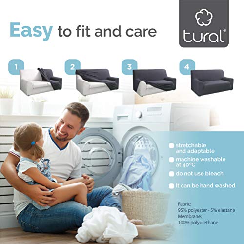 Tural Copridivano 100% impermeabile ed elastico, Grigio | 1 Posto (70 cm - 100 cm) Venezia | Proteggi divano resistente all'acqua