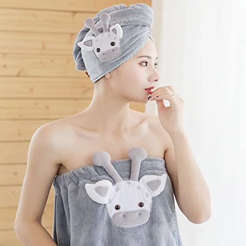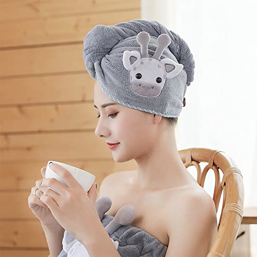 Turbante Asciugamano, Asciugamano Per Capelli,Asciugamano Assorbente Ad Asciugatura Rapida Carino Animale Turbanti 25*60cm Morbido Pile Di Corallo Microfibra Asciugamano Con Bottoni (Grigio)