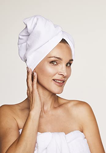 Turbante per Capelli Asciugamano per Capelli a Turbante Microfibra con Bottone Doccia con Pulsante per Tutti i Tipi di Capelli Bagnati Asciugamano da Doccia Taglia Universale (Bianco)