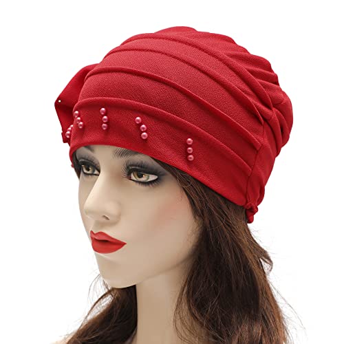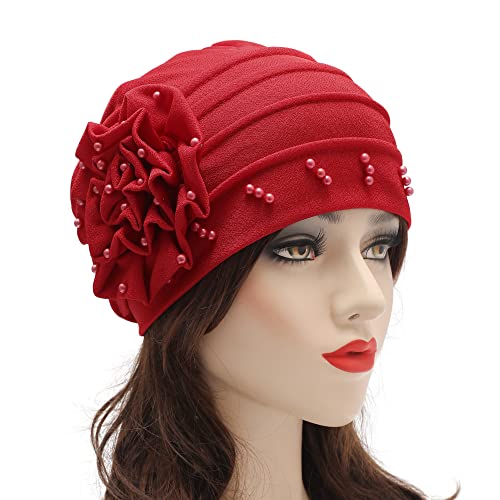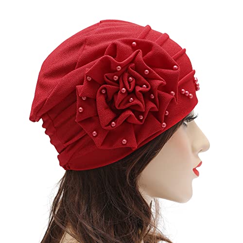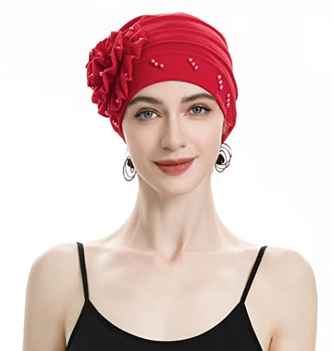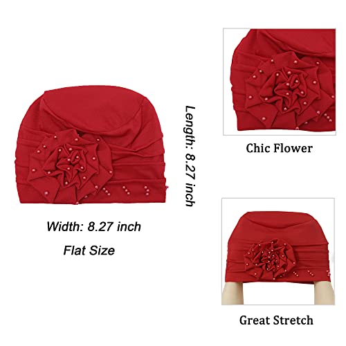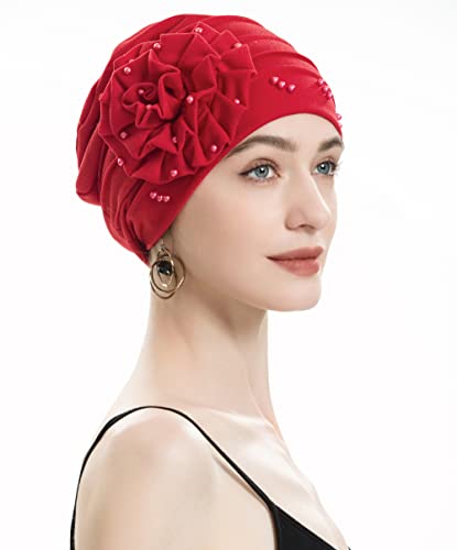 Turbante da donna Beanie Hat con fiore Chemo copricapo elastico copricapo Wrap Cap, Fiore rosso., Taglia unica