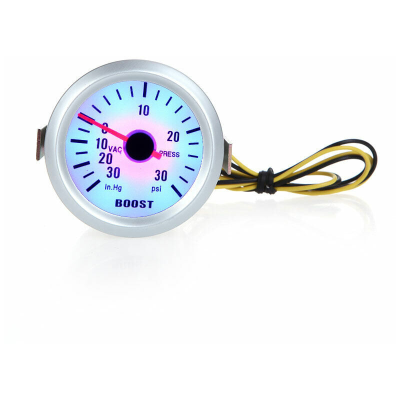 Caratteristiche: Numeri e puntatore mostrano chiaramente la pressa/vac. Luce LED blu per una facile lettura nell'oscurità. L'intervallo di misurazione è 0~30in.Hg / 0~30PSI. Alta sensibilità e facilità d'uso. Utilizzato per misurare la pressione del turbo dell'automobile. Specifiche: Colore: argento Unità: in.Hg / PSI. Misurazione intervallo: 0~30in.Hg / 0~30PSI Alimentazione: 12 V CC, max. 0,3 A Lunghezza del tubo in PVC: 172 cm / 68 pollici Dimensioni indicatore turbo boost: 5,7 * 6,4 cm / 2,2 * 2,5 pollici (diametro * altezza) Peso indicatore turbo boost: 92 g / 3,2 once Dimensioni del pacchetto: 17 * 12 * 7,8 cm / 6,7 * 4,7 * 3,1 pollici Peso del pacchetto: 254 g / 9 once Il pacchetto include: 1 * Boost Gauge 1 * Tubo in PVC 1 * Raccordo a T