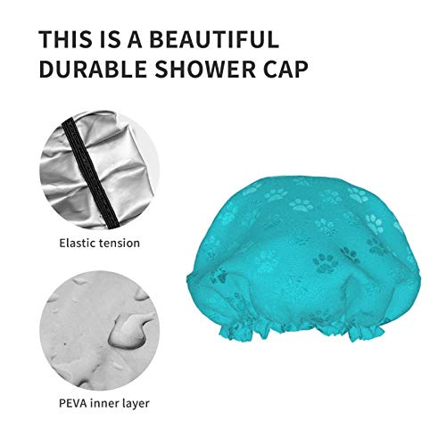 Teal Aqua Blue Turchese Dog Paws Cuffie da doccia, Cuffia da bagno per uomini e donne Cuffie da bagno elastiche riutilizzabili a doppio strato impermeabili Cuffie da doccia per tutte le lunghezze
