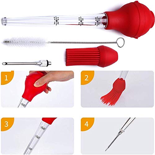 Turchia Baster Set di 4, Commerical Grade Quality FDA Silicone Lampadina Inclusa Carne Arinade iniettore ago per Grigliare Cottura marinatura imbastitura con Barbecue Pennello e Spazzola di Pulizia