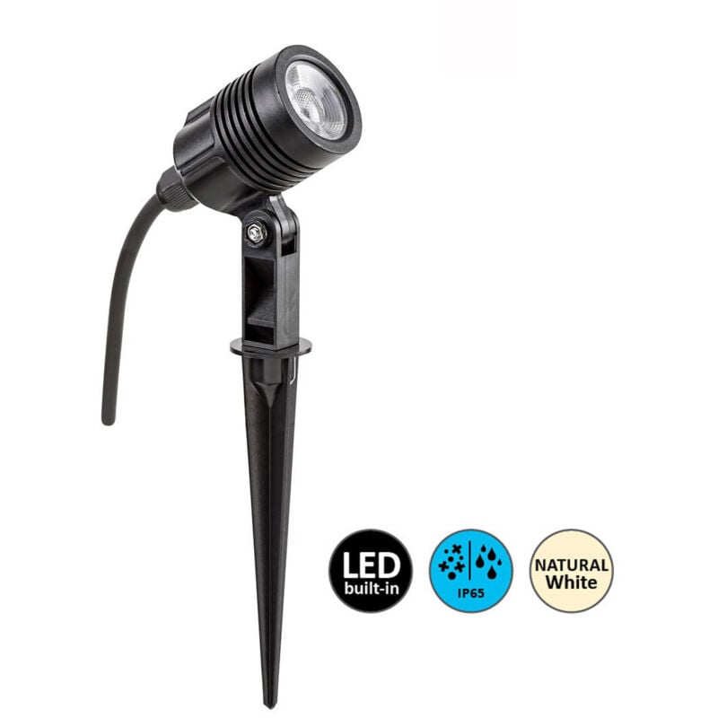 Picchetti da giardino .La lampada da esterno a stelo Turda in stile moderno realizzata in nero con paralume trasparente. La lampada completamente realizzata in plastica. La luce di questa lampada cilindrica e flessibile pu essere direzionata secondo le tue esigenze, quindi puoi usarla per illuminare il percorso attraverso il tuo giardino o alcune delle tue piante preferite. La Turda ha un LED integrato con una potenza di 3 W, un flusso luminoso di 260 lumen con paralume e 360 lumen senza paralume e una temperatura di colore di 4.000 K. La lampadina che emette luce bianca naturale ha una durata di 12.500 ore. Questa lampada da esterno ha le seguenti dimensioni: larghezza 80 mm, altezza 235 mm, diametro del paralume 40 mm. La lampada basculante Turda ha un grado di protezione IP65, cioè è completamente sigillata e protetta da materiale solido, sporco e getti d'acqua a bassa pressione.CARATTERISTICHE DEL PRODOTTO:Categoria di prodotto=Illuminazione esterna:Tipo=Luce montata a