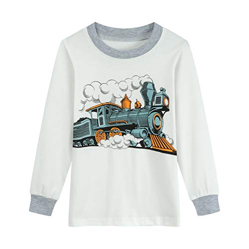 TURMIN Pigiama con Motivo Dinosauro per Bambino, Pigiama a Maniche Lunghe Cotone T-Shirt e Pantaloni in Due Pezzi per Neonato Bambino Ragazzi Ragazze 2-8 Anni-Bianca