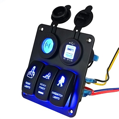 3 LED blu illuminato Interruttore a bilanciere con guarnizioni in gomma per attività all'aperto e marine, corto circuito / protezione di surriscaldamento