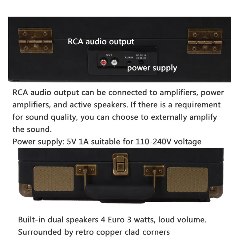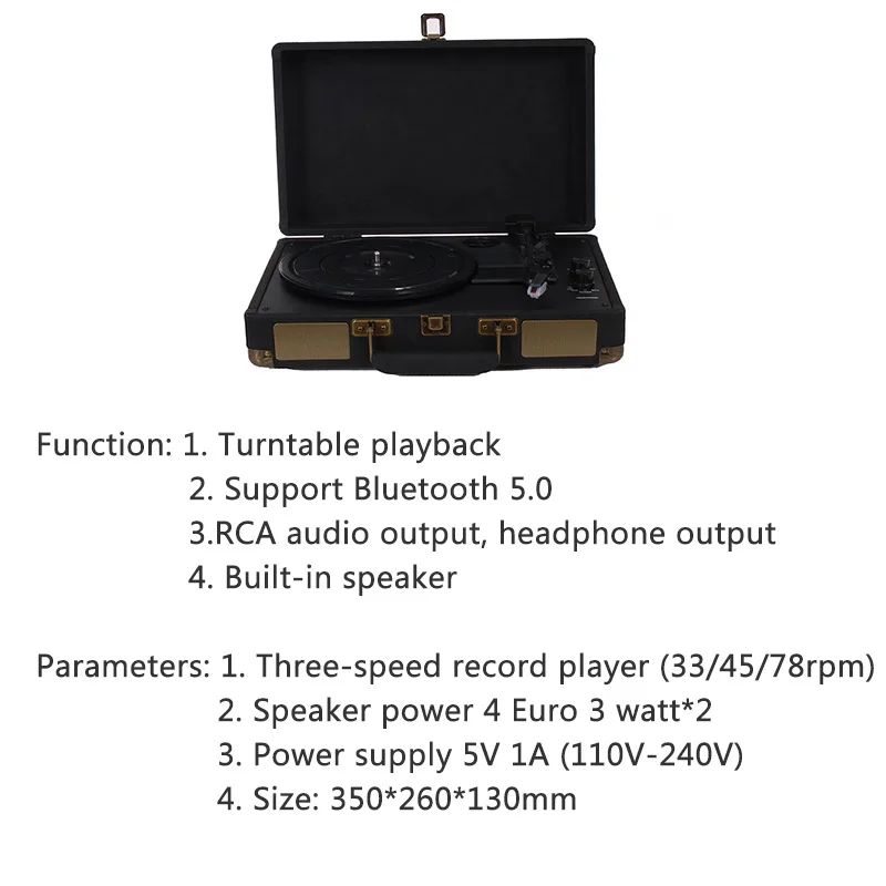 Turntable High-end portable luggage gramophone vinyl record player Bluetooth 5.0 33 45 78RPM gramophone retro record player