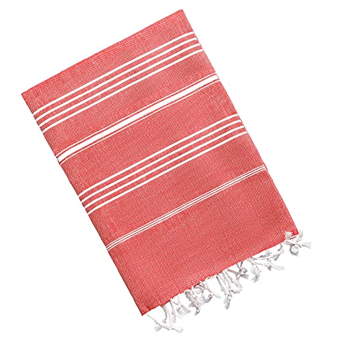Turquoise Home, Grande Asciugamano da Spiaggia 100% Cotone - Morbido e Durevole, Telo Mare Ideale per Sauna, Spa, Yoga e Piscina, Fouta Rosso (1 Unità), 100x180 cm