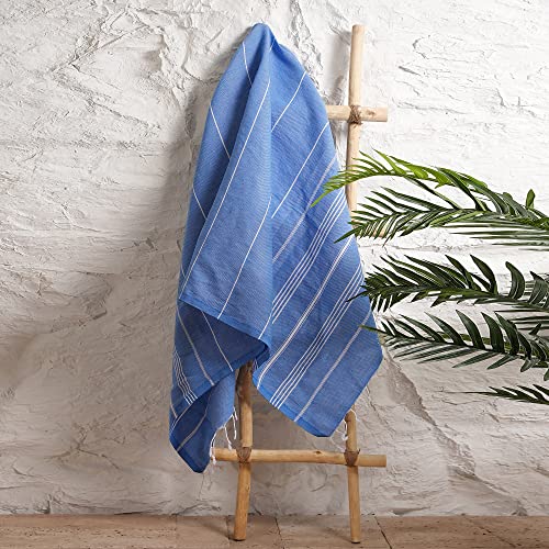 Turquoise Home, Grande Asciugamano da Spiaggia 100% Cotone - Morbido e Durevole, Telo Mare Ideale per Sauna, Spa, Yoga e Piscina, Fouta Celeste (1 Unità), 100x180 cm