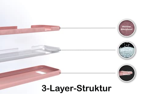 Struttura a 3 strati: la custodia in silicone ha una struttura a tre strati. La parte esterna è realizzata in silicone liquido. Il PC rigido garantisce stabilità nel mezzo. Il rivestimento in microfibra sul lato interno garantisce protezione dai graffi.