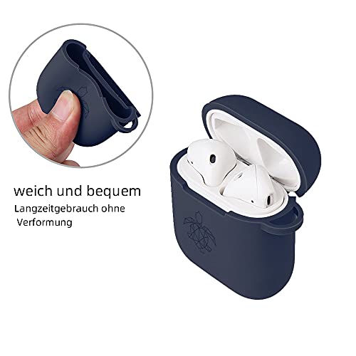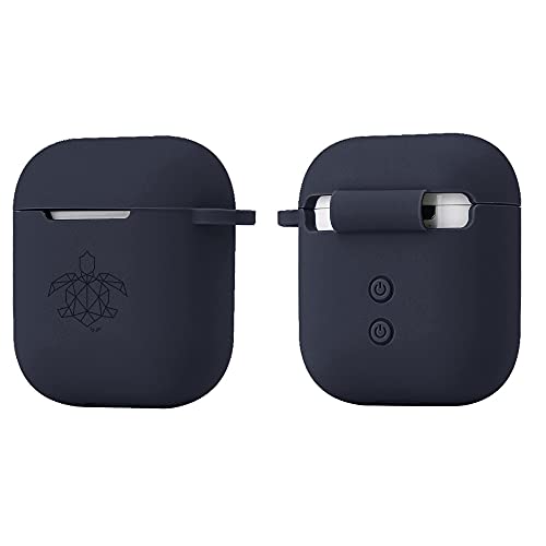 Turtleandcase Custodia in silicone compatibile con AirPods, custodia antiurto con moschettone, supporta la ricarica wireless per AirPods (AirPods 1 & 2, blu notte
