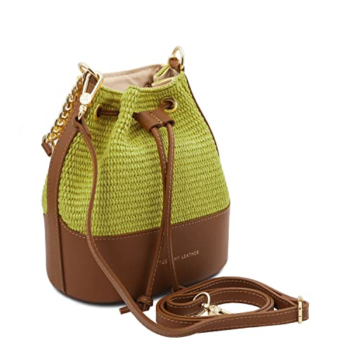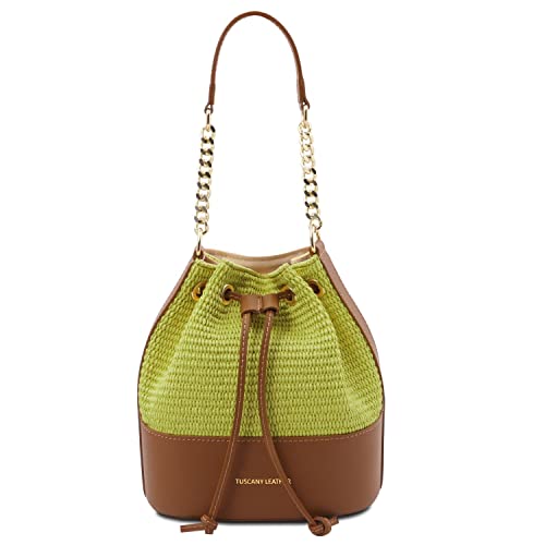 Tuscany Leather TLBag Secchiello effetto paglia Verde