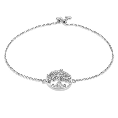 Tuscany Silver - Bracciale regolabile con albero della vita, in argento Sterling e zirconia cubica
