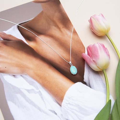 Tuscany Silver Collana Catenina con Pendente da Donna in Argento Sterling 925, con Turchese Sintetica, 46 cm