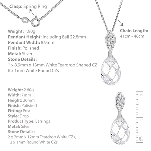 Tuscany Silver Set Collana con Pendente e Orecchini da Donna in Argento Sterling 925, con Zirconio Cubico, 46 cm