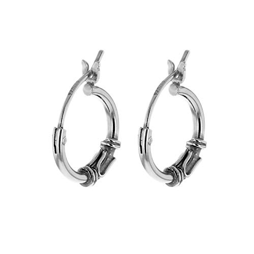 Tuscany Silver Orecchini a cerchio creoli da donna in argento ossidato da 12 mm con dettaglio ondulato