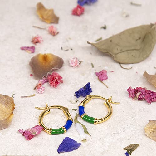 Tuscany Silver Orecchini a cerchio da donna in argento Sterling placcato oro giallo 15 mm smaltati a 2 colori, Smalto Placcato in oro, Blu e verde.