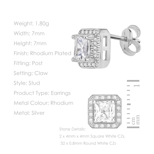 Tuscany Silver Orecchini a Perno da Donna in Argento 925, Placcato in Rodio, con Zirconia Cubica