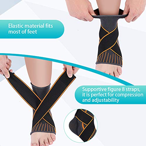 PROTEZIONE E STABILITÀ: La fascia per il supporto della caviglia può essere utilizzata con qualsiasi scarpa adeguata, il supporto a forma di otto della cinghia di stabilizzazione avvolge la caviglia per fornire protezione e stabilità contro gli infortuni. Le cinghie elastiche antiscivolo rendono la caviglia più attiva, non preoccuparti che il cinturino scivoli via, avvolgilo attorno all'arco plantare e alla caviglia fino a quando non si adatta alle dimensioni della caviglia.