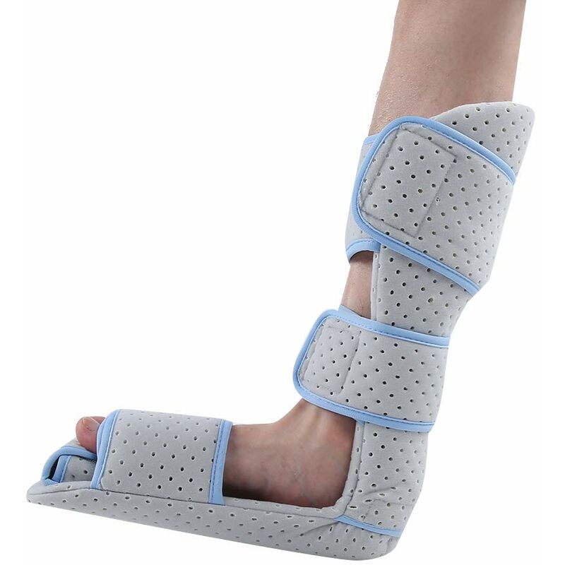 Realizzato in tessuto di velluto, chiusure in velcro e piastra di base in plastica, leggero e facile da usare. Utilizzare sotto la guida di professionisti. Dopo aver posizionato la stecca sul sito di utilizzo, regolarla e fissarla all'area interessata del paziente. Viene fornito con una sfera per massaggio ai piedi per ottenere un migliore effetto di recupero. Per proteggere la caviglia dalla caduta, per alleviare il dolore notturno nella fascite plantare e per fissare il gesso. Adatto per distorsione acuta della caviglia, recupero postoperatorio dopo frattura, meningite del tendine di Achille, emiplegia fissa, fascite plantare