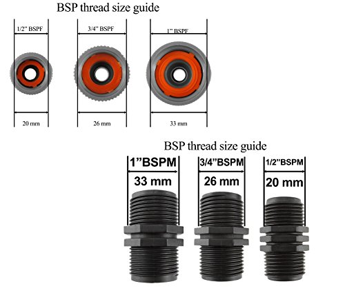 Tutte le dimensioni per rubinetto per rubinetto filettato BSP filetto, non sai come il rubinetto ha?Nessun problema questo set risolve il problema e si adatta a 1/2,"3/4" e filettatura 2,5 cm.Qualsiasi combinazione di usarla will letto giù su un spessore rondella per garantire un Drip free Seal.Non solo che include una femmina per rubinetto completamente gratis. Accessorio di costo Wise®, l' irrigazione specialisti