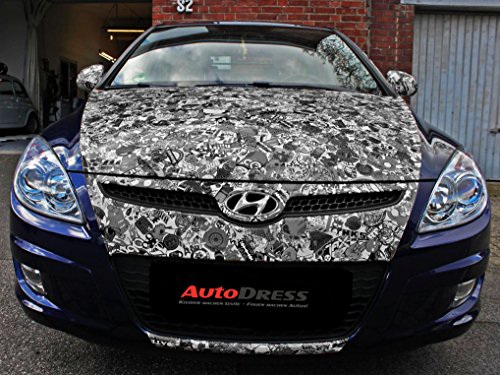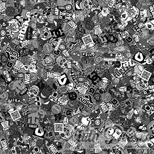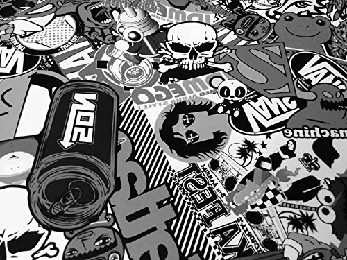 Tutti i Design di Tutte Le Dimensioni: Stickerbomb Auto pellicole Lucide o opache - Marca Sticker Bomb Logo Adesivo JDM (100 x 150 cm, SD Nero Bianco Lucido).